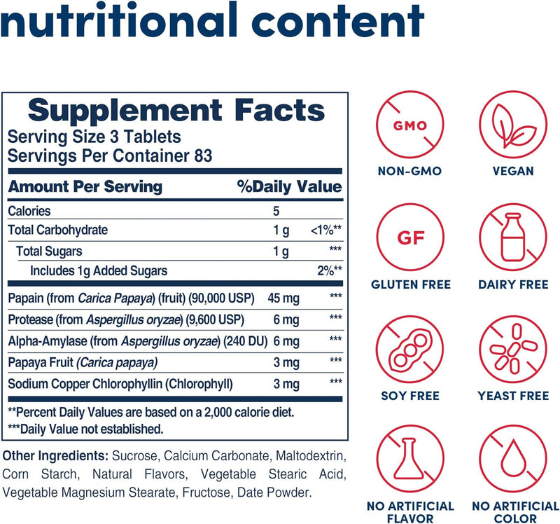 Our famous blend with Chlorophyll is the perfect "after meal" supplement®. Our formula contains freshly ripened Papaya. The formula also has enzymes including papain, amylase and protease which aid in the digestion of proteins, carbohydrates and fats.