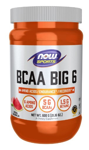BCAA Big 6 Powder, Watermelon Flavor - 600 g (21.16 oz), by Now Sports
