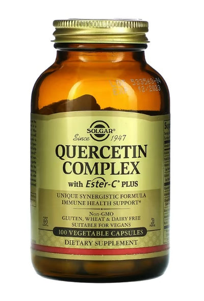 Solgar® Quercetin Complex includes the important bioflavonoid Quercetin in a synergistic formula with Ester-C Plus to provide unique antioxidants as well as immune health support. Quercetin is found in onions and other foods. It possesses antioxidant properties which help to stabilize cell membranes. Ester-C Plus provides a patented, pH neutral (non acidic), form of vitamin c that is gentle on the stomach. Ester-C Plus offers the additional benefits of incorporating acerola berry, citrus bioflavonoids, rutin and rose hips. This formula also features bromelain, a natural enzyme derived from pineapple.