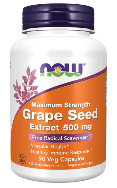NOW Grape Seed Extract is a highly concentrated natural extract with a minimum of 90% Polyphenols, including Oligomeric Proanthocyanidins (OPCs), which are the potent water-soluble free radical scavenging compounds found in Grape Seeds. A growing body of research indicates that Grape Seed OPCs may help to support the health of vascular, bone, kidney, brain and other tissues by supporting a healthy, balanced immune response to oxidative and metabolic stress.