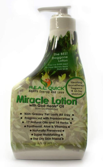 H.E.A.L. QUICK® Miracle Lotion® with God Heals® Oil from GodHeals.net works wonders on normal, dry, cracking, rough, itchy or problem skin. Pure luxurious emollients soften and soothe skin, leaving your skin glowing. Most feel the conditioning and moisturizing effects all day, even after washing. There are NO added fragrances or preservatives. Fragranced only with rich, pure Frankincense oil which sells for over 1,000.00 per gallon.