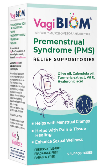 Pre-Menstrual Syndrome (PMS) Relief Suppositories - 5 Suppositories, by Biom Probiotics
