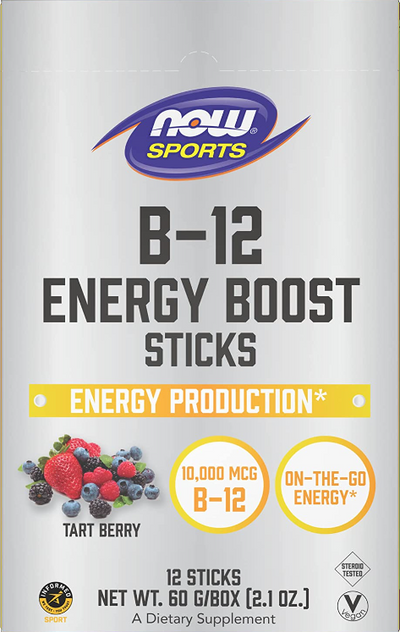 B-12 Energy Boost Sticks, Tart Berry, 10,000 mcg, 12 Sticks, 2.1 oz (60 g), by NOW