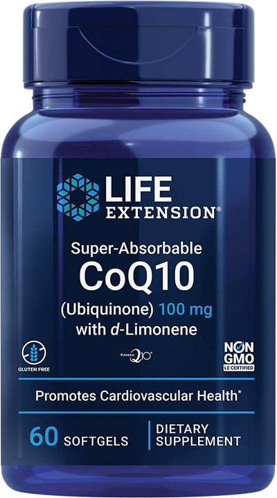 Super-Absorbable CoQ10 with d-Limonene provides the ubiquinone form of CoQ10 in a super-emulsified formulation. d-Limonene is a natural compound in orange oil that disperses and breaks down the CoQ10 particles, which reduces their size and makes CoQ10 more absorbable by the body.