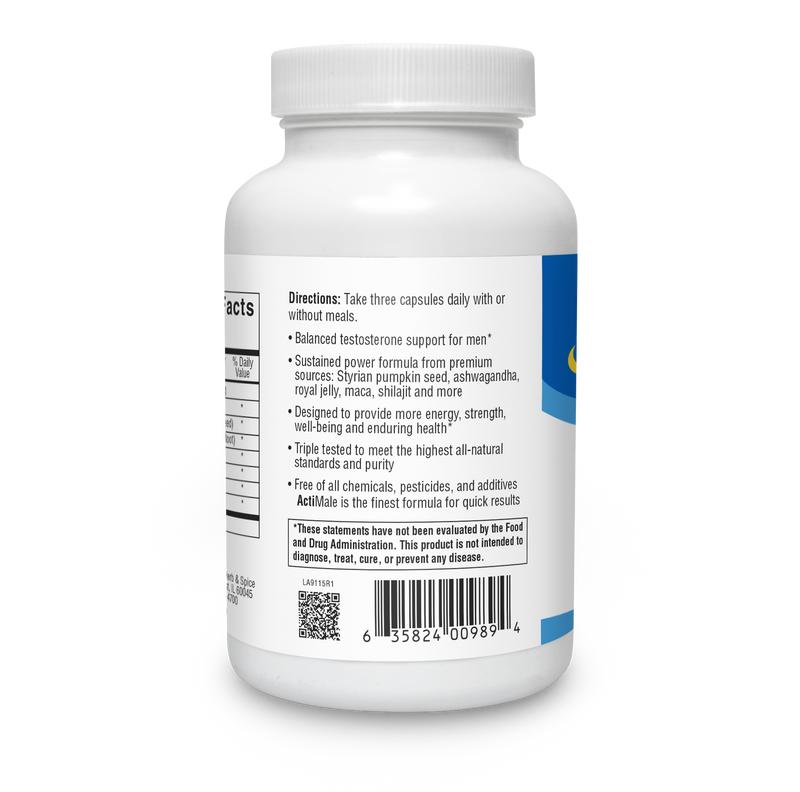 ActiMale is designed to provide testosterone balance, libido, energy, strength, and enduring masculine health. Ideal for all stages of manhood. Stay Strong Inside.