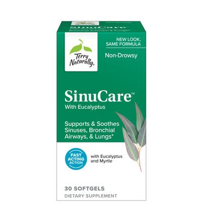 SinuCare provides Eucalyptus and Myrtle to support sinus, bronchial, lung, and entire upper respiratory function.