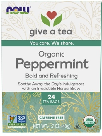 NOW Foods NOW Real Tea Organic Peppermint Tea is bold and refreshing, to soothe away the day's indulgences with an irresistible herbal brew. When it comes to refreshing flavors, is there anything better than peppermint? Now thinks not. Its bold flavor and natural oils from the peppermint leaf create a beneficial beverage that can help you settle down from the day's indulgences. Best of all, you'll be completely kissable after just one sip!