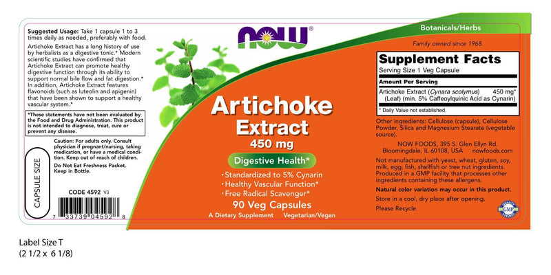 Artichoke Extract 450 mg 90 Veg Capsules | By Now Foods - Best Price