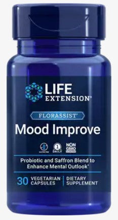 FLORASSIST Mood provides three billion colony-forming units of Lactobacillus helveticus strain R0052 and Bifidobacterium longum strain R0175.