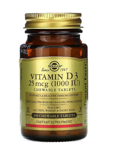 Vitamin D3 Natural Strawberry Banana Swirl Flavor 25 mcg (1,000 IU) 100 Chewable Tablets