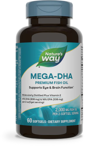 Mega-DHA is a super concentrated 50% DHA fish oil in a convenient 1,000 mg softgel. Each softgel provides 500 mg of DHA, 200 mg EPA, and 10 IU of Vitamin E.