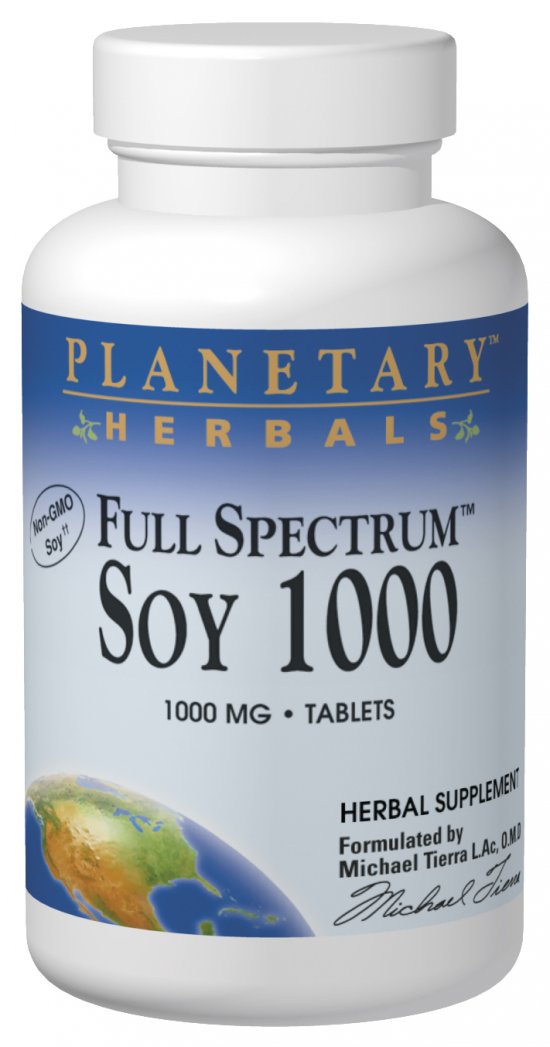 Planetary Herbals Full Spectrum Soy 1000 is made from the germ of isoflavone-rich soybeans, using a chemical-free process that yields a consistent standardized isoflavone content. It requires approximately 400 pounds of soybeans to yield just one pound of finished product. With Full Spectrum Soy 1000, Planetary Herbals brings the remarkable properties of a time-honored food plant into your wellness program today.