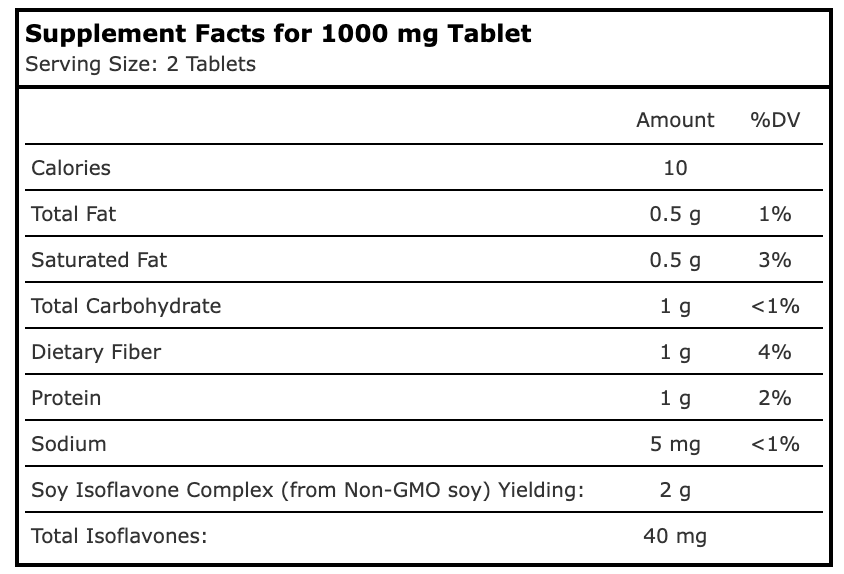Isoflavones are unique polyphenol compounds which are found in the soybean plant. Research suggests that soy protein and soy isoflavones may reduce the frequency and severity of hot flashes during menopause. Planetary Herbals FULL SPECTRUM™ SOY 1000 contains 40 mg of soy isoflavones per serving which are naturally occurring and come from non-GMO soy.