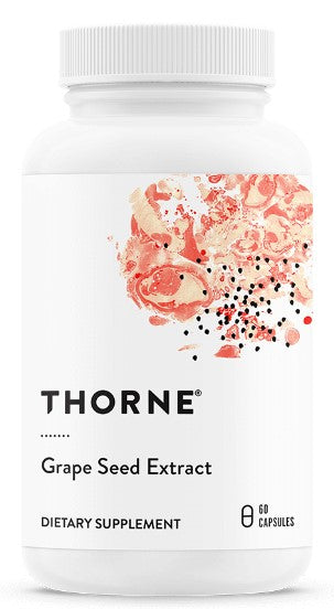 The primary constituents of Thorne's grape seed extract are oligomeric proanthocyanidins (OPCs). OPCs have strong free-radical scavenging (antioxidant) ability, resulting in inhibition of oxidative damage and protection of blood vessels and other tissues.* OPCs have been shown to protect vascular endothelial cells from oxidative damage and appear to strengthen the resistance of cell membranes to injury and impairment.* OPCs also can bind copper and iron, thereby reducing their oxidative effects.* Grape Seed Extract contains Leucoselect Phytosome®, which have demonstrated in studies to reduce the oxidation of LDL-cholesterol in heavy smokers, and decrease oxidative stress in diabetics and in healthy individuals after a fatty meal.*