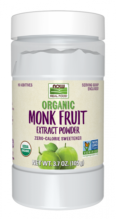 Monk fruit is also known as Luo Han Guo. Monk fruit is significantly sweeter than sugar, up to 200 times as sweet and is a fantastic alternative to sugar in beverages. NOW Real Food® Organic Monk Fruit Extract Powder has a delightfully vibrant, sweet taste with very little aftertaste.